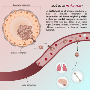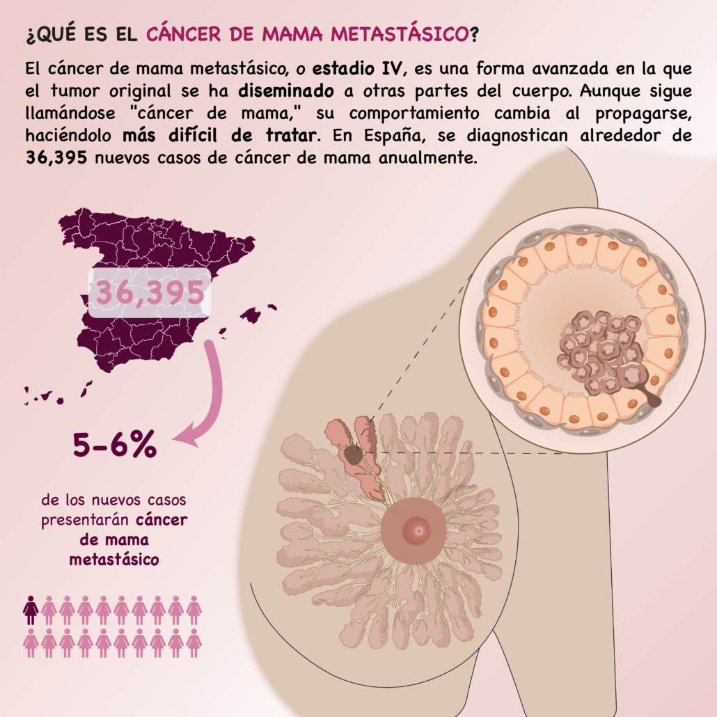 Illustrations made for dissemination on instagram where we explain in a simple and graphic way what metastatic breast cancer is, its incidence, how it occurs and the most affected organs. These images were made for a research project on postpartum breast cancer at IMIBIC called Proyecto Hera  led by Dr. Juan de la Haba.